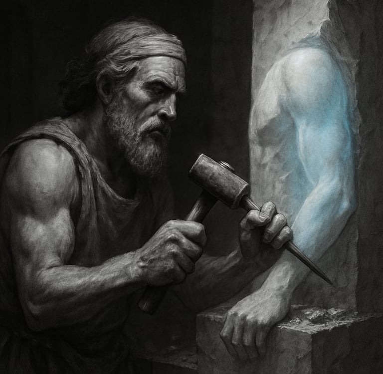 You are not here to become something artificial or to chase a manufactured identity. You are here to reveal what is already divine within you. Like Michelangelo, your task is to chisel away the excess. Cut away the noise, fear, ego, comparison, and illusion - until your true self emerges: strong, centered, radiant.